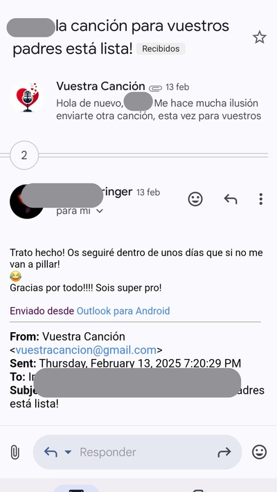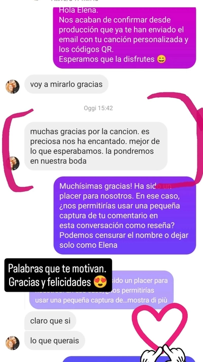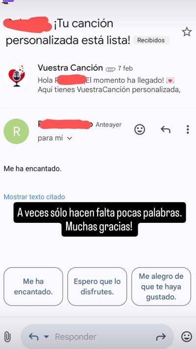 No utilizamos bases pregrabadas o productos "de stock". Creemos que la relación con tu persona especial es única e inimitable, y así debe ser también tu canción. Por eso, creamos tus letras de forma artesanal, y realizamos VuestraCanción en dos estilos musicales distintos, para que puedas disfrutar de una versión alternativa. ¿No estás seguro si vuestro amor es una Bachata o un Rock? ¡Te creamos los dos!